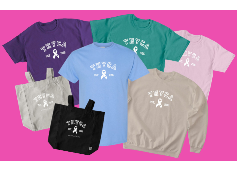 By shopping either at our print-on-demand ThyCa store, or from our items on hand on the ordering page, you can trust that you are getting authentic ThyCa gear supporting ThyCa: Thyroid Cancer Survivors’ Association, Inc.